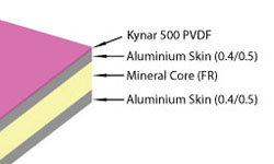 ALOCODRAND® Aluminium Composite Panel is compounded with top and bottom layers of aluminium sheet, non-toxic polyethylene core material. Both surfaces are coil coated with special baking varnish.  ALOCODRAND® Fire Retardant Mineral Core is compounded with top and bottom layers of Aluminium sheet, inorganic compound flame retardant and nanometer fire-resistant core material, both surface are coil coated with special baking varnish.